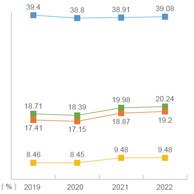 Unimicron encourages a diverse and open workplace culture and respects the uniqueness of each employee. In terms of recruitment, employment, evaluation, and promotion selection regardless of age, gender, race, religion, political beliefs, marital status, labor union affiliations, and background are treated fairly and equally, where the only considerations are finding the appropriate candidate for the appropriate position, and creating fair and diverse employment opportunities for all operation sites to promote local economic growth. By the end of 2022, the total number of formal employees at Unimicron was 28,402, the same as the previous period. The number of new employees and the deployment of dispatched manpower are adjusted on a rolling basis according to the current year's order situation, and a healthy turnover rate is maintained. As industrial production is semi-automated, some processes still rely on manual and labor-intensive work. Therefore, the proportion of male employees is higher than that of female employees. In 2022, migrant workers in Unimicron’s Taiwan Facilities are from the Philippines; as the Philippines is an English-speaking country, it is relatively easier to communicate. 78% of the employees at our plants in Mainland China are direct technical laborers.