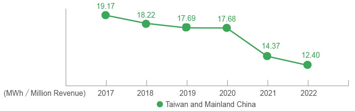 Unimicron is committed to pursuing the best efficiency in the use of energy and resources. Through the Energy Saving and Carbon Reduction Management Committee, Unimicron has formulated energy management plans and targets, and continues to implement management strategies such as electricity saving measures, energy efficiency improvement, energy management system introduction, and renewable energy use planning, effectively reducing the environmental impact caused by greenhouse gas emissions in response to future climate change risks. In 2022, electricity consumption intensity was 12.40 and carbon emission intensity was remaining at 6.7, both meeting annual targets.。